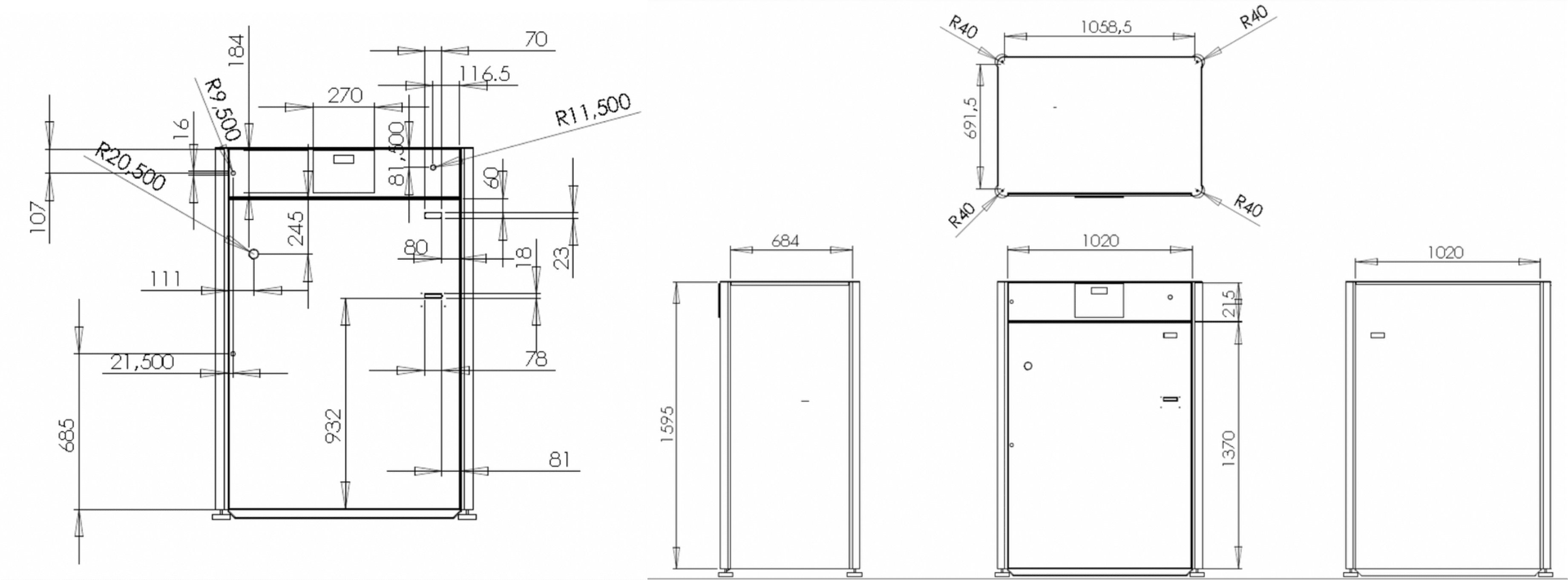 y compactación automática de residuos. Estructura en acero de alta calidad y pintura en polvo con RAL 9016.
